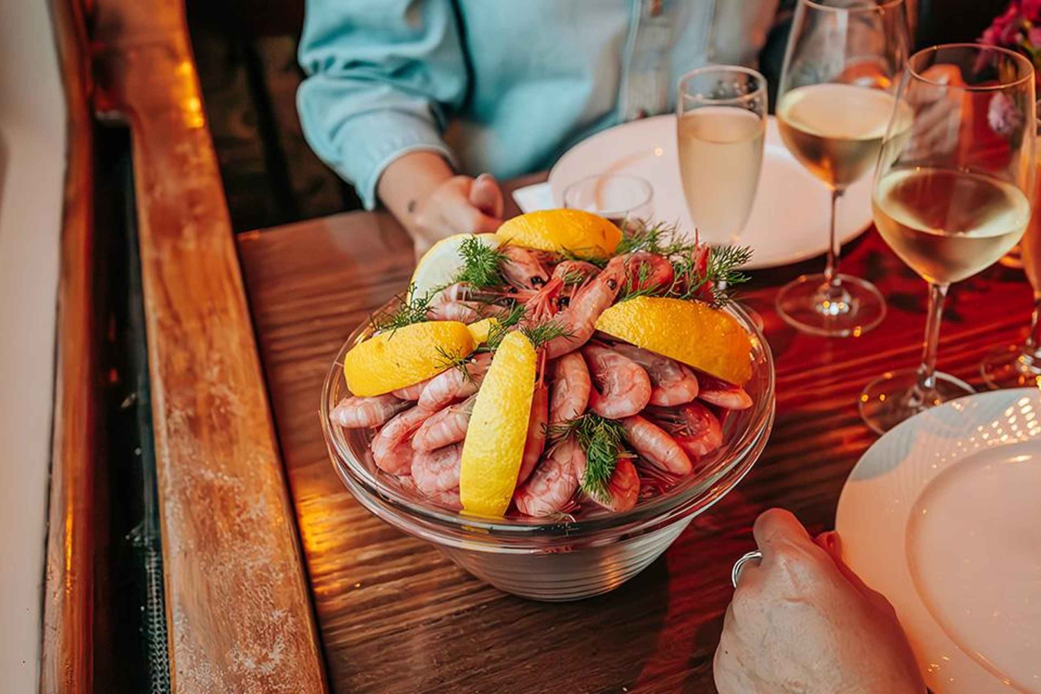 Goditi una crociera serale di 3 ore attraverso l'arcipelago di Stoccolma. Assapora deliziosi gamberi mentre ti godi la vista mozzafiato dell'arcipelago interno di Stoccolma.